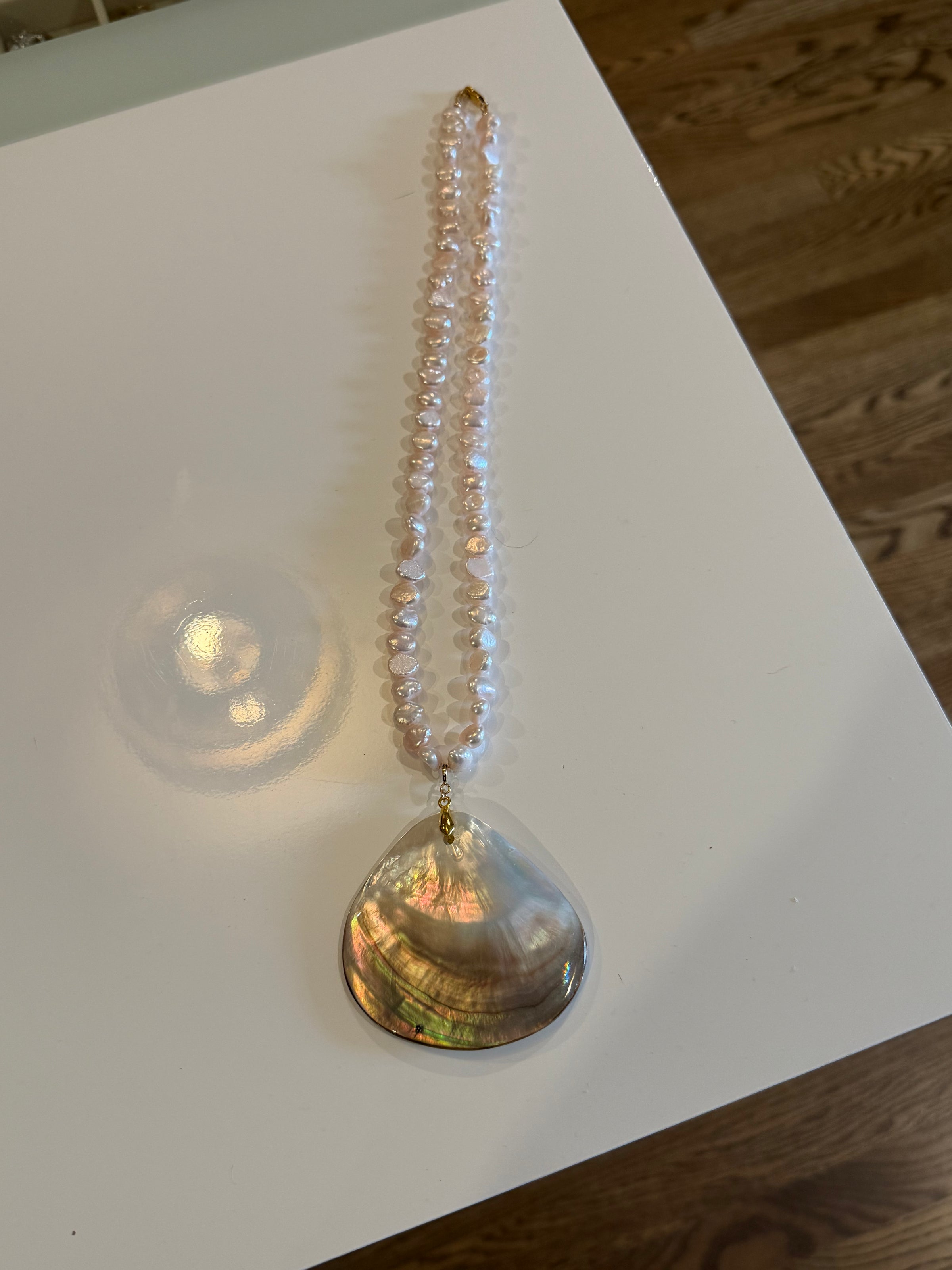 Materials: Freshwater pearls and authentic shell