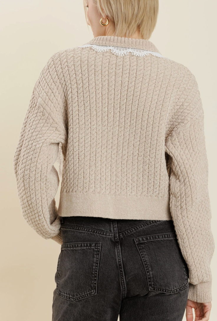 Sweater with Lace Trim by Aureum